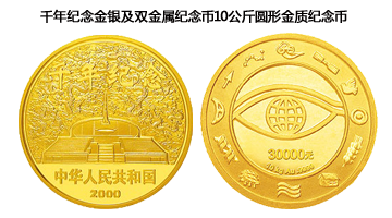 除了生肖题材,其他稀缺的大规格纪念币也有不错的行情。中国嘉德2011年春拍上,中国人民银行2000年发行的10公斤千禧年金币以770.5万元成交。这是中国现代贵金属纪念币史上第一枚10公斤金币,面额3万元,创下了当时的世界之最。