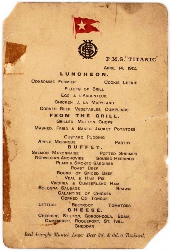 2015年在纽约城拍卖行狮心亲笔签名(Lion Heart Autographs)竞拍中,泰坦尼克号“最后的菜单”以88,000美元(约合人民币545908)的价格成功拍走。