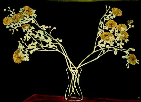 这幅《瓶菊》的拍前估价为2000万至3000万港元,为1950年作品,细腻的笔触,动人的色彩,丰富的细节,有一种难以名状、中西交融的美。乌黑的底色上,画家勾勒出一朵朵绮丽的金色菊花,映衬出花瓶底下的红桌。这幅作品是常玉黄金时期的代表作,唯一一幅金色瓶花。这位生前潦倒穷迫的画家又一次在拍卖场上显示出了自己的价值。
